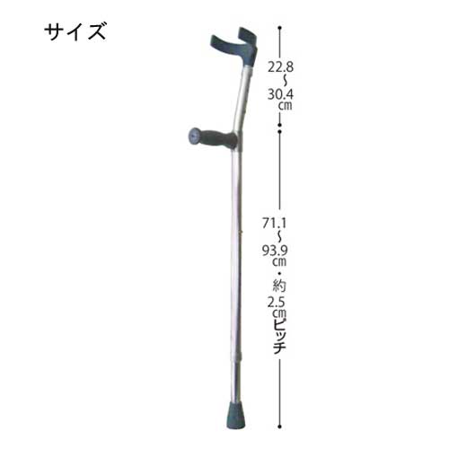 ・カフと呼ばれる丸い輪を通すと前腕で体重を受け持つので、松葉杖より弱い力で使えます。